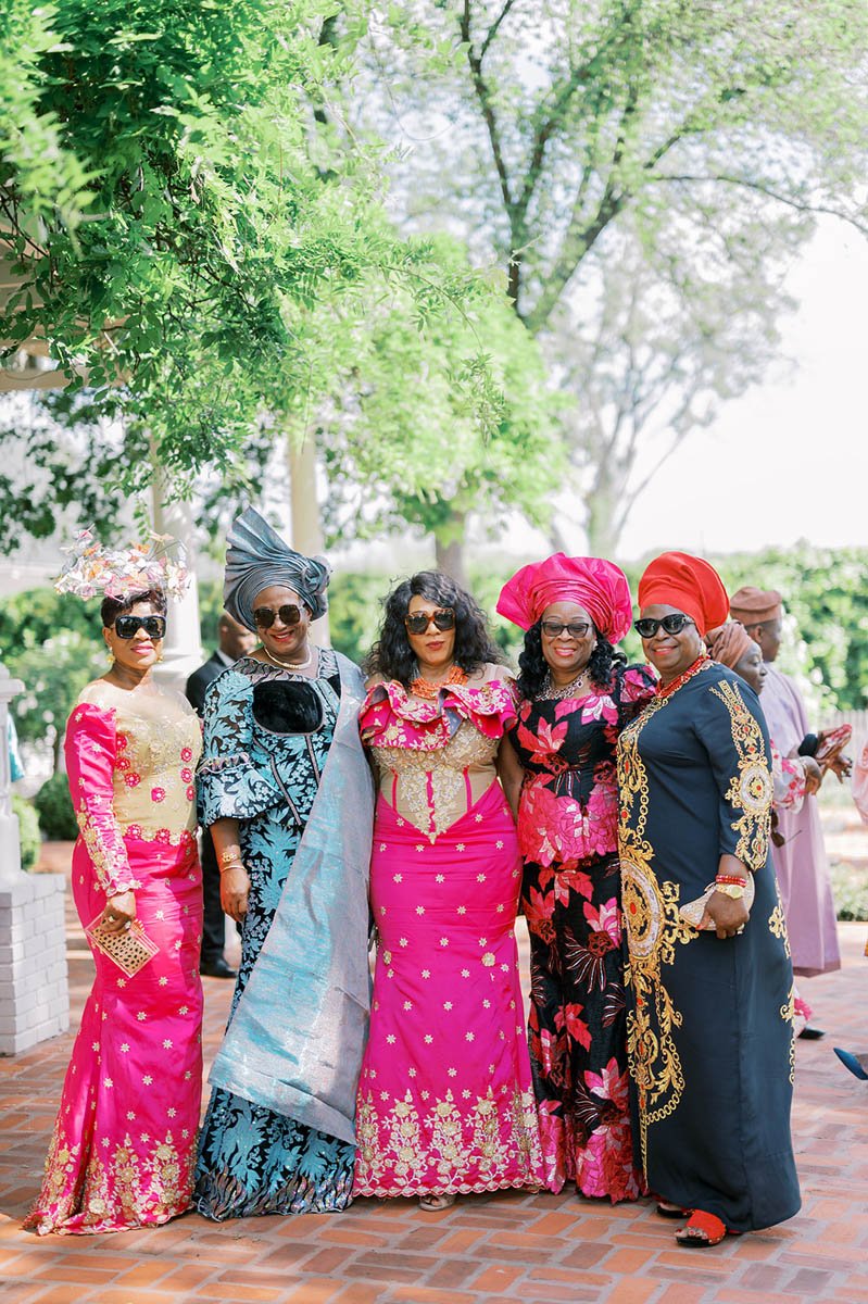 This magical event occurred at Woodbine Mansion in Round Rock, TX, just North of Austin, TX. It was a well-picked venue for Bukie and Charles’ classic wedding, featuring towering Magnolias, lush grounds, and Neoclassical details indoors and out. It was quite literally picture-perfect. While the venue was historical and allowed the setting to speak for itself, this couple made sure to add their flare by asking guests to wear traditional Nigerian attire. Although the wedding party wore traditional tuxes and gowns, the crowd sported a variety of bright, eye-catching colors, including orange, hot pink, turquoise, and yellow - to name a few. They also honored their Nigerian heritage with family-centered traditions and elements.