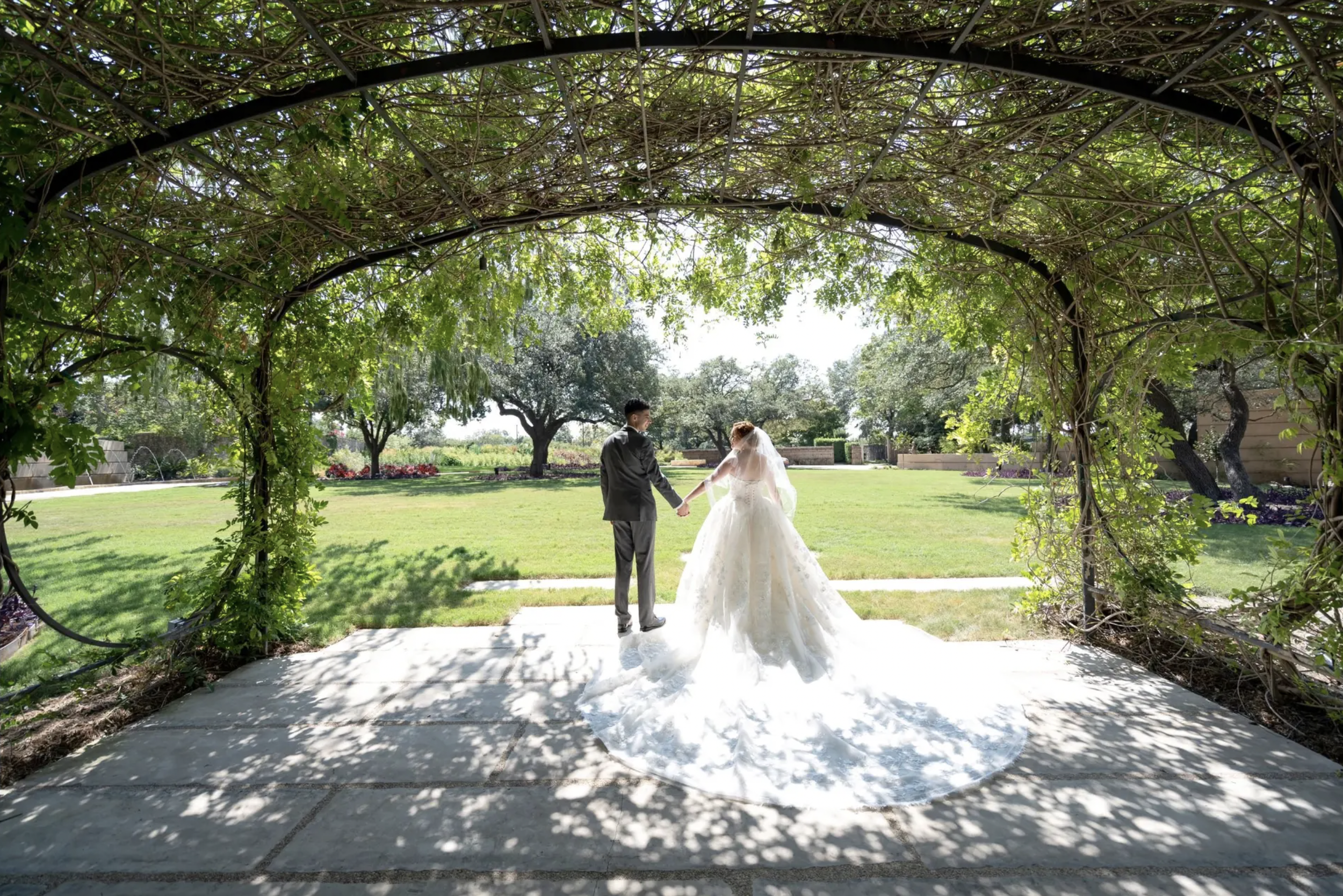 This place alone is miraculous but what’s better is the six different venue spaces you have to choose from. No matter the size of your wedding, they have something for you and I guarantee it’ll be stunning. The hard part is deciding which one fits your style, size, and budget the best. You have the Greehey Lawn, Lucile Halsell Conservatory, Amphitheater, H-E-B Discovery Center Classrooms, Auld House and Patio, and the new state-of-the-art indoor/outdoor venue, The Betty Kelso Center. This venue brings nature inside and feels cozy yet fancy. I’m obsessed with the unique wood paneling on the walls and ceiling, surrounding windows, and the patio overlooking the grandeur of the Greehey Lawn. Although their outdoor options are breathtaking, I wouldn’t be upset if this indoor beauty was the only available area.
